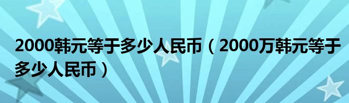 关于2000韩元等于多少人民币,2000万韩元等于多少人民币这个很多人还不知道,今天菲菲来为大家解答以上的问题,现在让我们一起来看看吧!