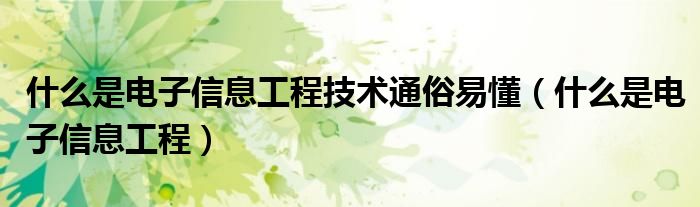 关于什么是电子信息工程技术通俗易懂,什么是电子信息工程这个很多人还不知道,今天菲菲来为大家解答以上的问题,现在让我们一起来看看吧!