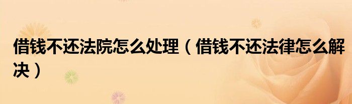 关于借钱不还法院怎么处理,借钱不还法律怎么解决这个很多人还不知道,今天菲菲来为大家解答以上的问题,现在让我们一起来看看吧!