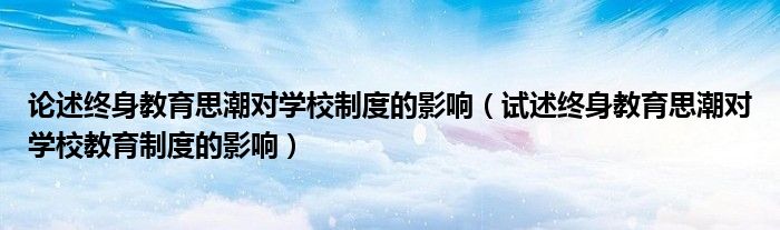 关于论述终身教育思潮对学校制度的影响,试述终身教育思潮对学校教育制度的影响这个很多人还不知道,今天菲菲来为大家解答以上的问题,现在让我们一起来看看吧!