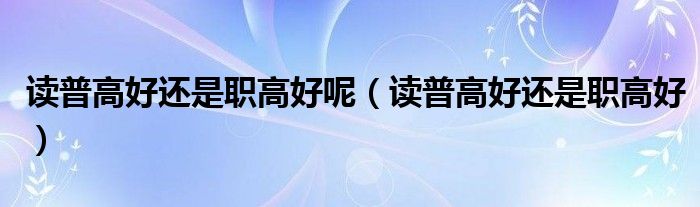 读普高好还是职高好呢(读普高好还是职高好)