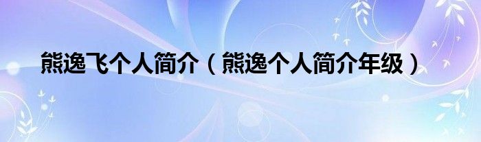熊逸飞个人简介(熊逸个人简介年级)