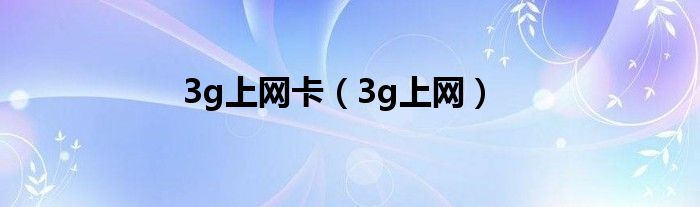 大家好,小飞来为大家解答以上问题,3g上网卡,3g上网很多人还不知道,现在让我们一起来看看吧!
