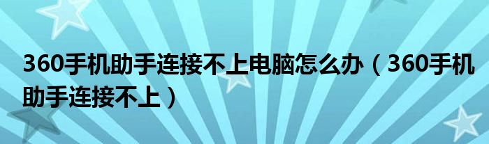 360手机助手连接不上电脑怎么办(360手机助手连接不上)