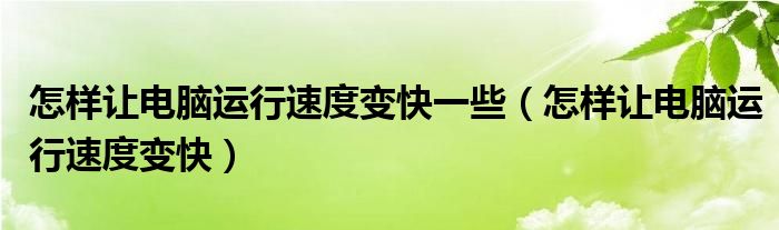 怎样让电脑运行速度变快一些(怎样让电脑运行速度变快)
