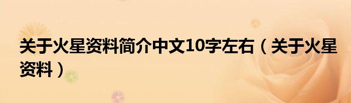 关于关于火星资料简介中文10字左右,关于火星资料这个很多人还不知道,今天菲菲来为大家解答以上的问题,现在让我们一起来看看吧!