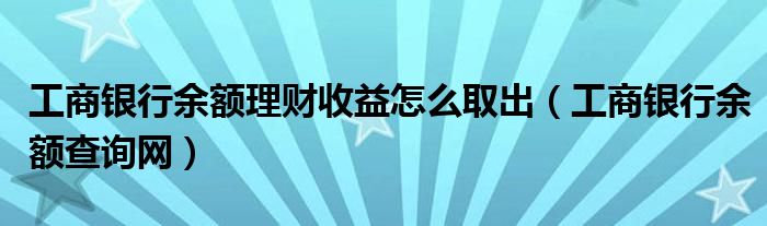大家好,小飞来为大家解答以上问题,工商银行余额理财收益怎么取出,工商银行余额查询网很多人还不知道,现在让我们一起来看看吧!