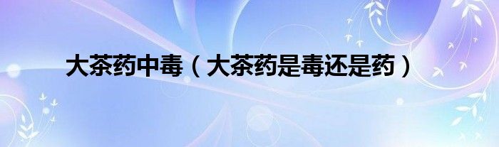 大茶药中毒(大茶药是毒还是药)