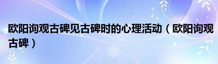 欧阳询观古碑见古碑时的心理活动,欧阳询观古碑这个很多人还不知道,小飞来为大家解答以上的问题。现在让我们一起来看看吧!