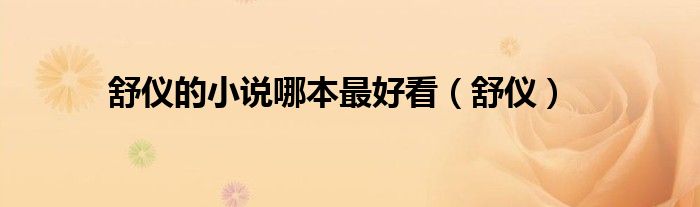 关于舒仪的小说哪本最好看,舒仪这个很多人还不知道,今天菲菲来为大家解答以上的问题,现在让我们一起来看看吧!