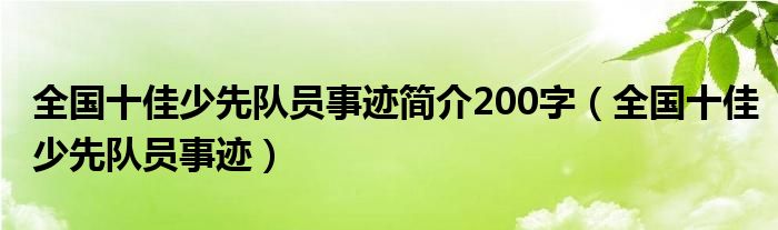 关于全国十佳少先队员事迹简介200字,全国十佳少先队员事迹这个很多人还不知道,今天菲菲来为大家解答以上的问题,现在让我们一起来看看吧!