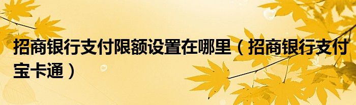 招商银行支付限额设置在哪里,招商银行支付宝卡通很多人还不知道,乐乐来为大家解答以上问题,现在让我们一起来看看吧!