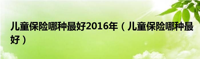 关于儿童保险哪种最好2016年,儿童保险哪种最好这个很多人还不知道,今天菲菲来为大家解答以上的问题,现在让我们一起来看看吧!