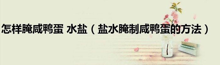 怎样腌咸鸭蛋 水盐(盐水腌制咸鸭蛋的方法)
