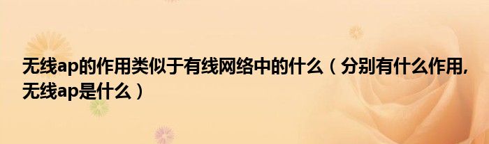 大家好,小常来为大家解答以上问题。无线ap的作用类似于有线网络中的什么,分别有什么作用,无线ap是什么很多人还不知道,现在让我们一起来看看吧!