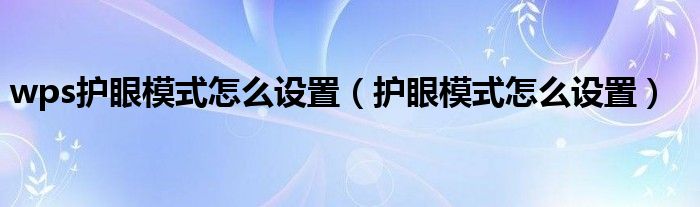 大家好,小晋来为大家解答以下问题,关于wps护眼模式怎么设置,护眼模式怎么设置很多人还不知道,今天让我们一起来看看吧!
