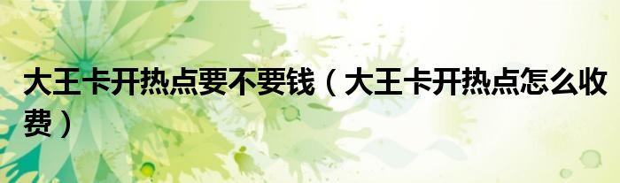 大王卡开热点要不要钱(大王卡开热点怎么收费)