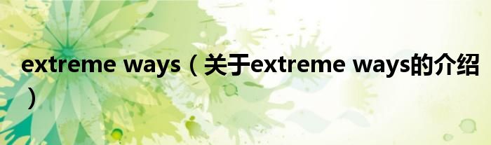 大家好,今天小乐来为大家解答以上的问题。extreme ways,关于extreme ways的介绍很多人还不知道,现在让我们一起来看看吧!