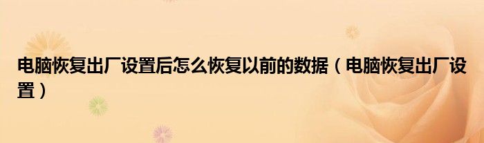大家好,小晋来为大家解答以下问题,关于电脑恢复出厂设置后怎么恢复以前的数据,电脑恢复出厂设置很多人还不知道,今天让我们一起来看看吧!