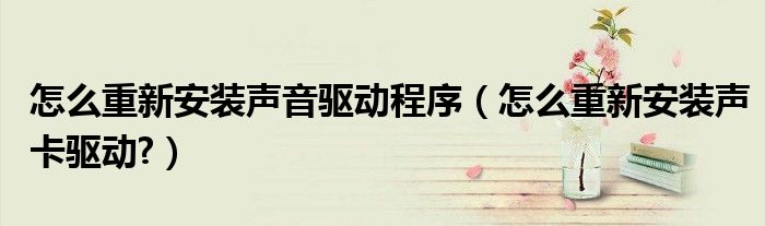 怎么重新安装声音驱动程序(怎么重新安装声卡驱动?)