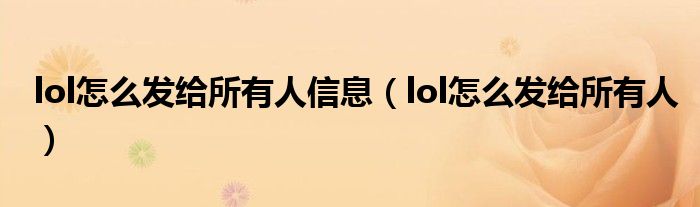 大家好,雨雨来为大家解答以上问题,lol怎么发给所有人信息,lol怎么发给所有人很多人还不知道,现在让我们一起来看看吧!