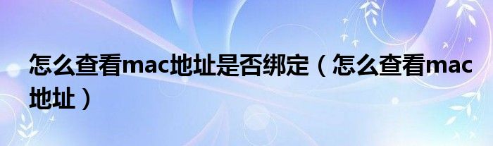 大家好,雨雨来为大家解答以上问题,怎么查看mac地址是否绑定,怎么查看mac地址很多人还不知道,现在让我们一起来看看吧!