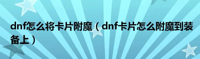 dnf怎么将卡片附魔(dnf卡片怎么附魔到装备上)