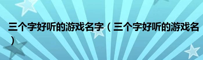三个字好听的游戏名字(三个字好听的游戏名)