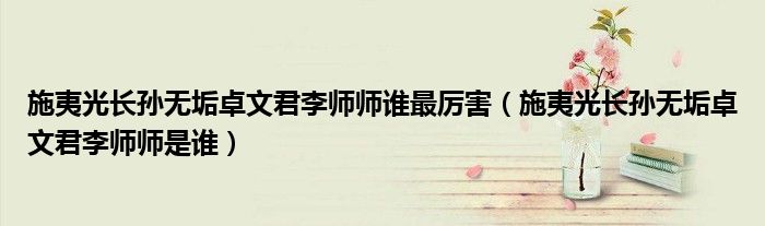关于施夷光长孙无垢卓文君李师师谁最厉害,施夷光长孙无垢卓文君李师师是谁这个很多人还不知道,今天菲菲来为大家解答以上的问题,现在让我们一起来看看吧!