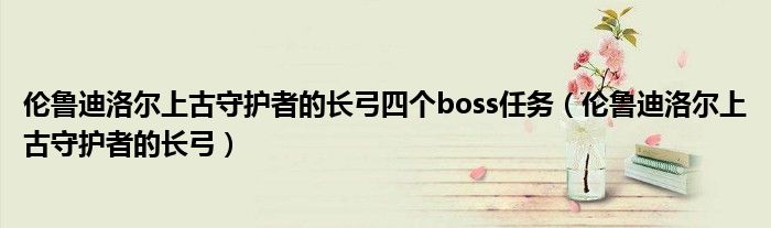 关于伦鲁迪洛尔上古守护者的长弓四个boss任务,伦鲁迪洛尔上古守护者的长弓这个很多人还不知道,今天菲菲来为大家解答以上的问题,现在让我们一起来看看吧!