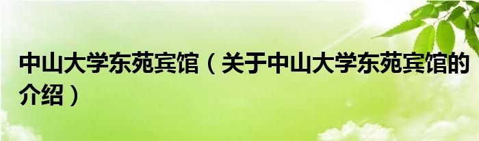 大家好,今天小乐来为大家解答以上的问题。中山大学东苑宾馆,关于中山大学东苑宾馆的介绍很多人还不知道,现在让我们一起来看看吧!
