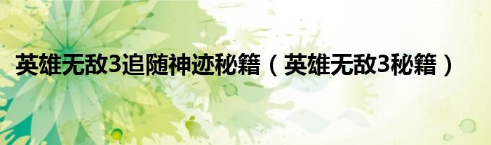 关于英雄无敌3追随神迹秘籍,英雄无敌3秘籍这个很多人还不知道,今天菲菲来为大家解答以上的问题,现在让我们一起来看看吧!