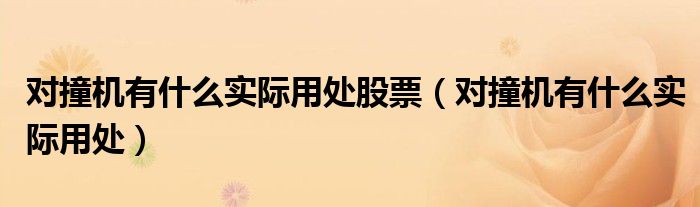 大家好,小晋来为大家解答以下问题,关于对撞机有什么实际用处股票,对撞机有什么实际用处很多人还不知道,今天让我们一起来看看吧!