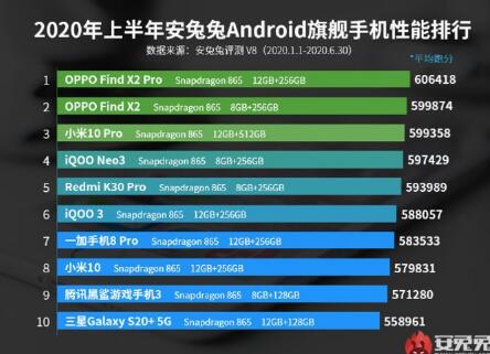 尽管小米并没有位居榜首,但如果我们依靠属于小米子品牌的Redmi K30 Pro,它仍然在榜单上排名4。Vivo的iQOO游戏智能手机以及唯一的Galaxy S20 + 5G也位列最后。