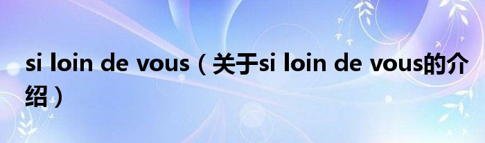 si loin de vous(关于si loin de vous的介绍)