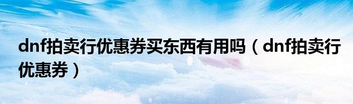 dnf拍卖行优惠券买东西有用吗(dnf拍卖行优惠券)