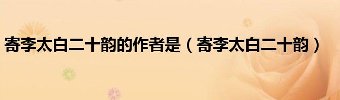 关于寄李太白二十韵的作者是,寄李太白二十韵这个很多人还不知道,今天菲菲来为大家解答以上的问题,现在让我们一起来看看吧!