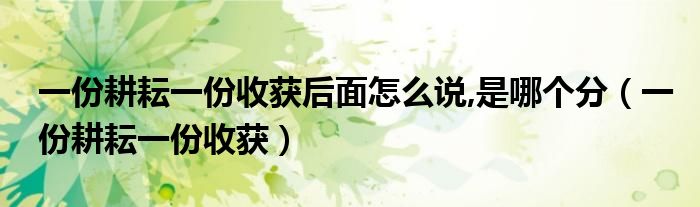 关于一份耕耘一份收获后面怎么说,是哪个分,一份耕耘一份收获这个很多人还不知道,今天菲菲来为大家解答以上的问题,现在让我们一起来看看吧!