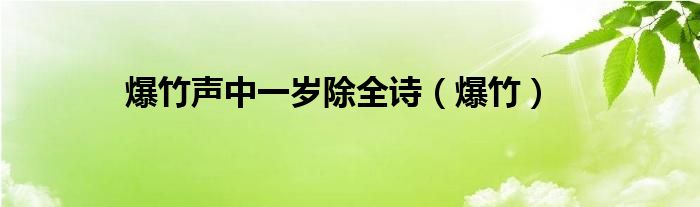 关于爆竹声中一岁除全诗,爆竹这个很多人还不知道,今天菲菲来为大家解答以上的问题,现在让我们一起来看看吧!