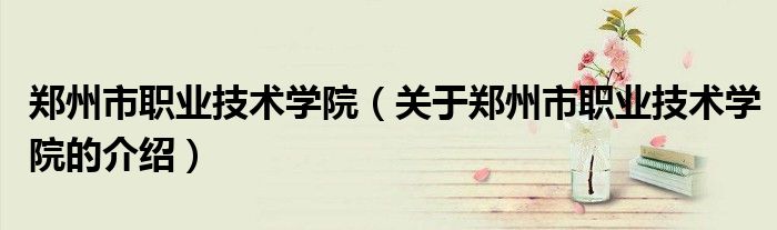 郑州市职业技术学院(关于郑州市职业技术学院的介绍)