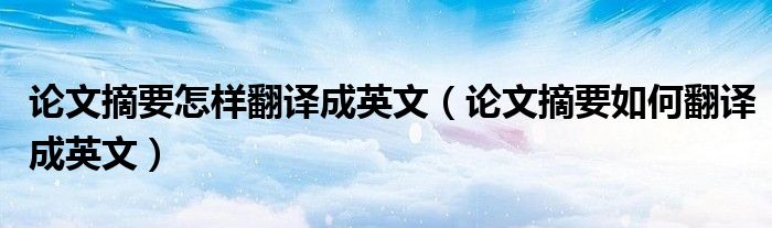 关于论文摘要怎样翻译成英文,论文摘要如何翻译成英文这个很多人还不知道,今天菲菲来为大家解答以上的问题,现在让我们一起来看看吧!