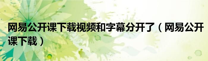 关于网易公开课下载视频和字幕分开了,网易公开课下载这个很多人还不知道,今天菲菲来为大家解答以上的问题,现在让我们一起来看看吧!