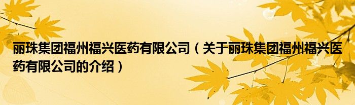 丽珠集团福州福兴医药有限公司(关于丽珠集团福州福兴医药有限公司的介绍)