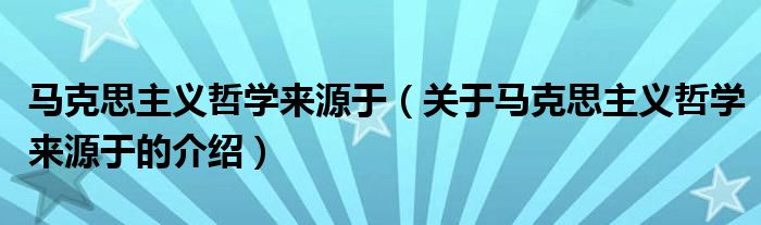 马克思主义哲学来源于(关于马克思主义哲学来源于的介绍)