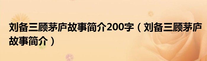 关于刘备三顾茅庐故事简介200字,刘备三顾茅庐故事简介这个很多人还不知道,今天菲菲来为大家解答以上的问题,现在让我们一起来看看吧!