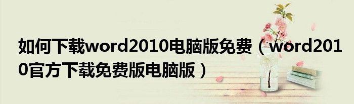 关于如何下载word2010电脑版免费,word2010官方下载免费版电脑版这个很多人还不知道,今天菲菲来为大家解答以上的问题,现在让我们一起来看看吧!