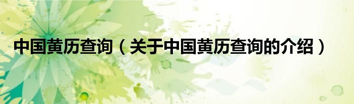 中国黄历查询(关于中国黄历查询的介绍)