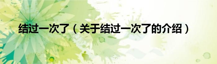 大家好,小都来为大家解答以上的问题。结过一次了,关于结过一次了的介绍很多人还不知道,现在让我们一起来看看吧!