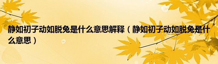 静如初子动如脱兔是什么意思解释(静如初子动如脱兔是什么意思)