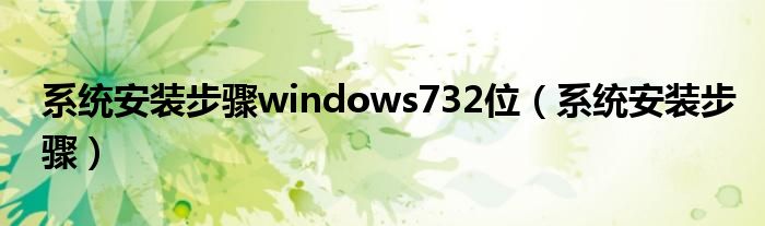 大家好,小飞来为大家解答以上问题,系统安装步骤windows732位,系统安装步骤很多人还不知道,现在让我们一起来看看吧!
